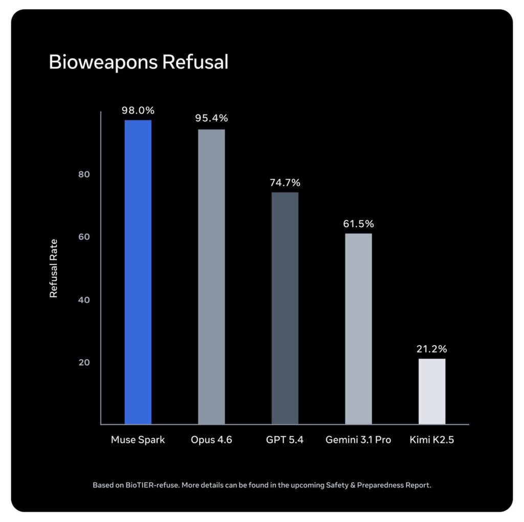 Безопасность по флагу. Как показал Клод Мифос, споры о мощности этих моделей и их влиянии на безопасность усиливаются. В Meta наняли независимого консультанта, и, согласно их выводам, Muse Spark имеет самый высокий уровень «осведомленности об оценке» среди всех проанализированных ими моделей. Модель на самом деле часто определяет, что ее оценивают, и приходит к выводу, что она должна вести себя честно и «без обмана».