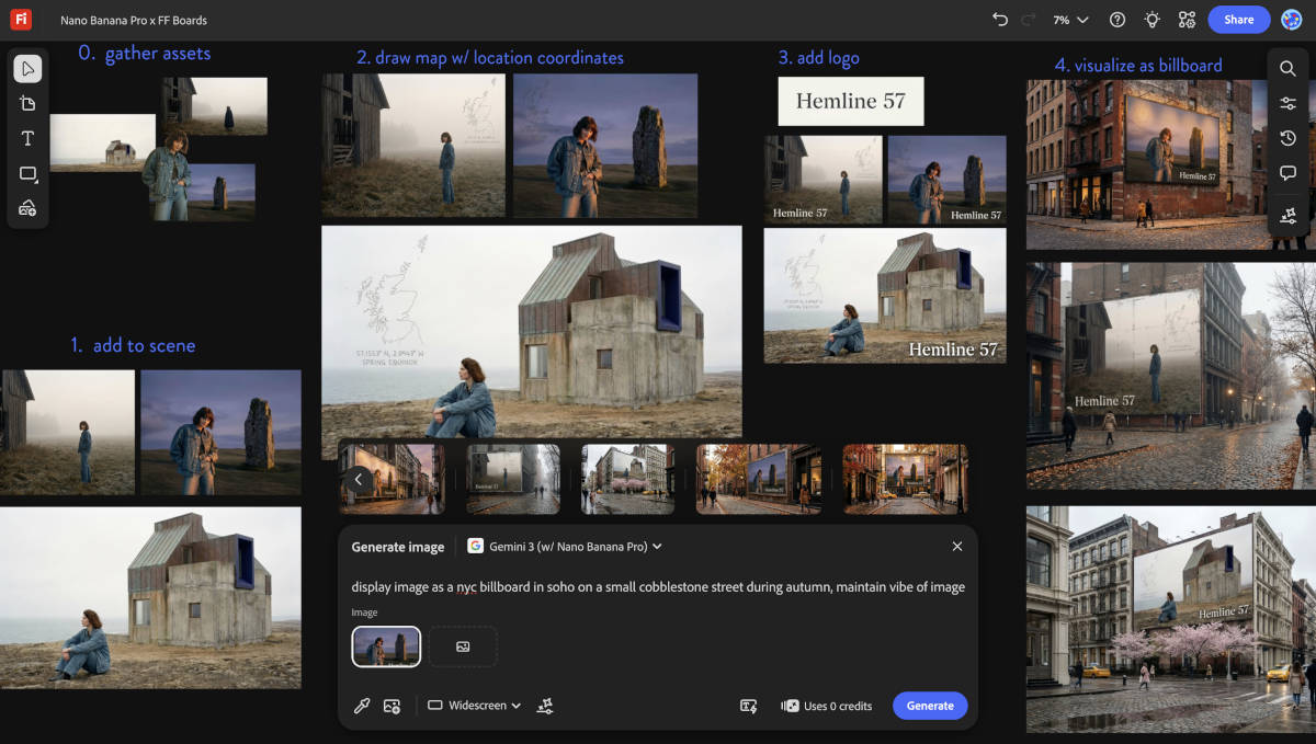 Adobe интегрировала эту модель как в среду Firefly, так и в Photoshop, где она усиливает инструмент Generative Fil l. В Firefly его можно использовать для создания изображений из текста, а также для работы с несколькими визуальными ссылками и создания досок для совместной работы с помощью Firefly Boards. Эта функция позволяет командам дизайнеров обмениваться концепциями, изучать визуальные варианты и поддерживать творческую согласованность в общих проектах. И все это без потери ручного управления такими настройками, как пропорции, цвет, освещение или визуальный стиль.